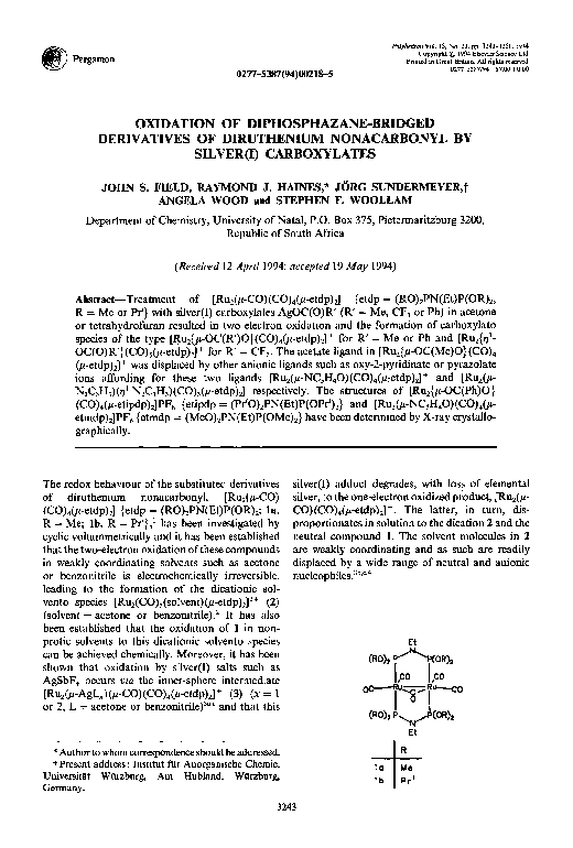 Pdf Oxidation Of Diphosphazane Bridged Derivatives Of Diruthenium Nonacarbonyl By Silver I Carboxylates Raymond Haines Academia Edu