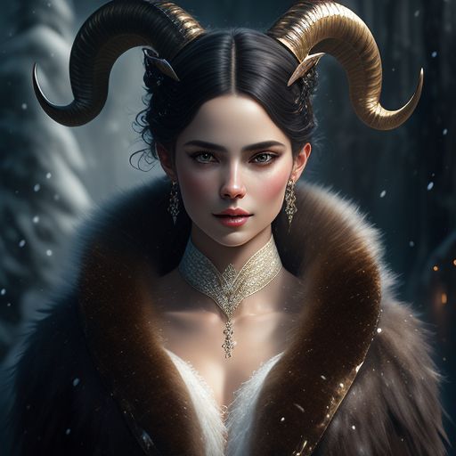 Wee Yak112 A Young Wild Stunning Female Satyr With Large Horns And Icicles Hanging From Her Fur Snowy Region